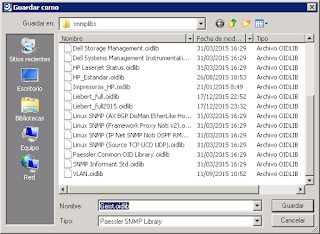 Ahora solo nos queda adicionar esta MIB como una librería conocida para PRTG Network Monitor para lo cual simplemente seleccionamos la opción Save for PRTG Network Monitor del menú File (File > Save for PRTG Network Monitor), colocamos el nombre a la librería y seleccionamos Guardar.